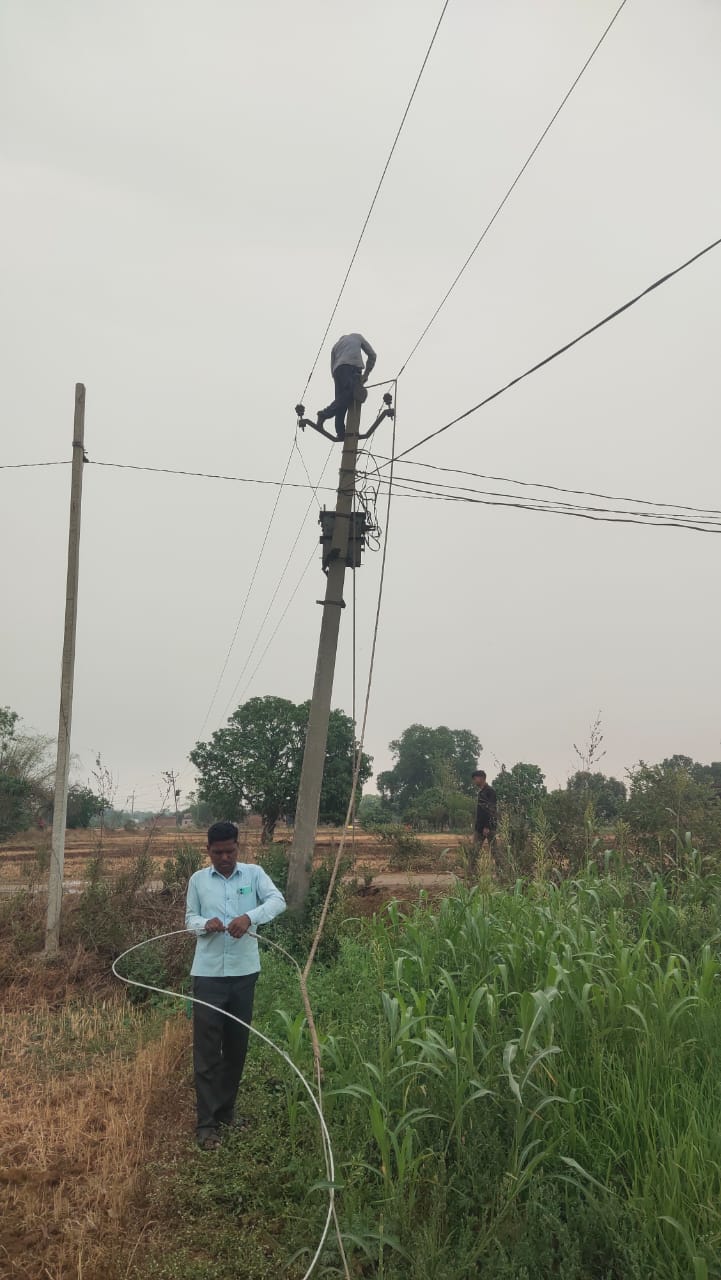 रविवार को आई तेज आंधी में क्षतिग्रस्त हुए बिजली के खंभे, तार और ट्रांसफार्मर।